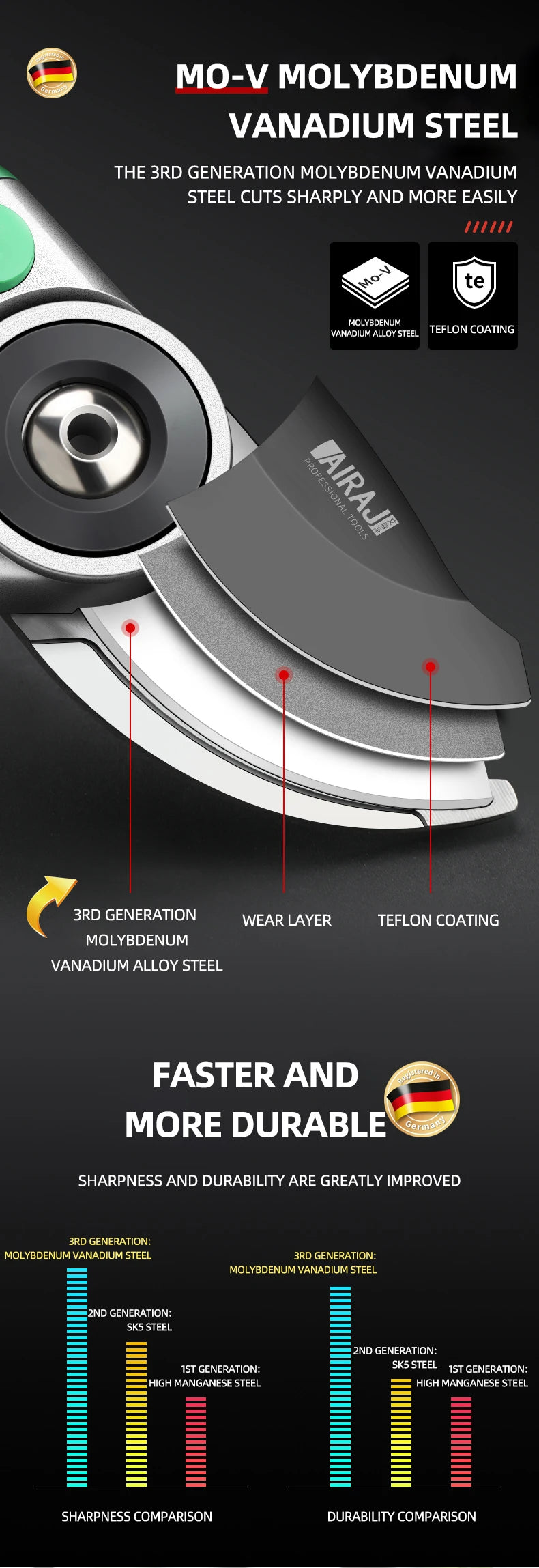 AIRAJ Pruning Shear Garden Tools Labor Saving Scissors Gardening Plant Sharp Branch Pruners Protection Hand Durable